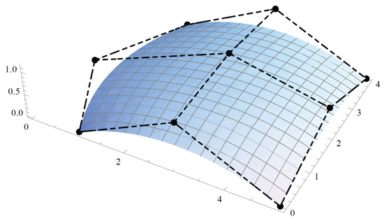 - Step 1: For , we compute . The fuzzy control points on the first row are , , . Applying Algorithm 2,Similarly, and .