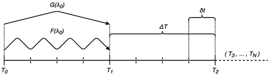 The parareal iterative scheme is driven by two operators, G and F, which are called coarse propagator and fine propagator respectively. On the other hand, we assume that the time-dependent problem is approximated by some appropriate classical discretization schemes. Let be a fine time step. Each subproblem will be solved by G with respect to , and then by F, based on . Note that the discretization schemes exploited for such two operators might be different. Finally, in order to approximate the solution of (16) in parallel, we come out with an iterative method given by