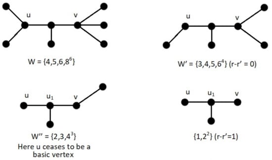 Suppose that no leaf is attached to u. Let be two legs of T. Let (i = 1, 2) and be a child of in . Let G = . Then, G and T have the same weight sequence. ☐