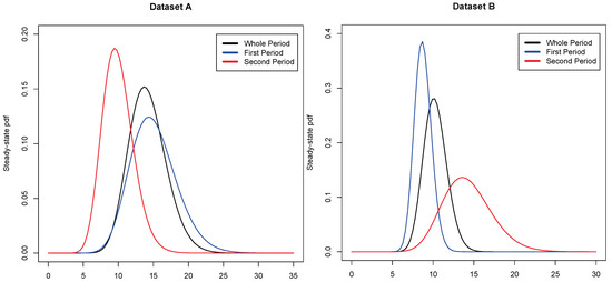 For Datasets A and B, due to the Markovianity of the process, we consider the estimates relative to the second periods (1 January 2008–31 March 2015 for Dataset A and 1 January 2009–31 March 2015 for Dataset B) shown in Table 2.