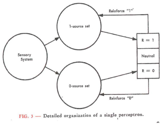 Rosenblatt attached importance to the following “fundamental feature of the perceptron”: “When an A-unit of the perceptron has been active, there is a persistent after-effect which serves the function of a ‘memory trace’. The assumed characteristic of this memory trace is a simple one: whenever a cell is active, it gains in ‘strength’ so that its output signals (in response to a fixed stimulus) become stronger, or gain in frequency or probability” [16] (p. 3).
