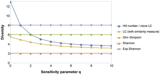 - Chao, A.; Chiu, C.H.; Jost, L. Unifying species diversity, phylogenetic diversity, functional diversity, and related similarity and differentiation measures through Hill numbers. Annu. Rev. Ecol. Evol. Syst. 2014, 45, 297–324. [Google Scholar] [CrossRef]