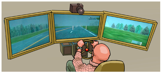 While driving simulators allow for the examination of a range of driving performance measures in a controlled and safe driving environment, no single driving performance measure can capture all effects of distraction [4] and driver distraction is a multidimensional phenomenon. Virtual simulations have been designed and used to study the effects of interventions (or stressors) on distracted driving [5,6,7]. Most of these works have mainly studied the impacts of the interventions and stress on changes in the driver’s breath and heart rate in addition to lane deviation with mostly simple statistical methods. Taggart demonstrated that driving in dense, fast-moving traffic raised the heart rate from the resting range of 70–85 to 100–140 beats per minute regardless of age [5]. Casali demonstrated that the breath rate erratically changes when the driver is agitated or distracted [6]. Jibo et al. found out that cognitive load reduces the variability in the lane position of drivers [7].