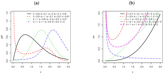 Similar to the pdf, the critical points of the hrf given by Equation (6) satisfy , with