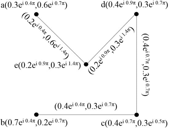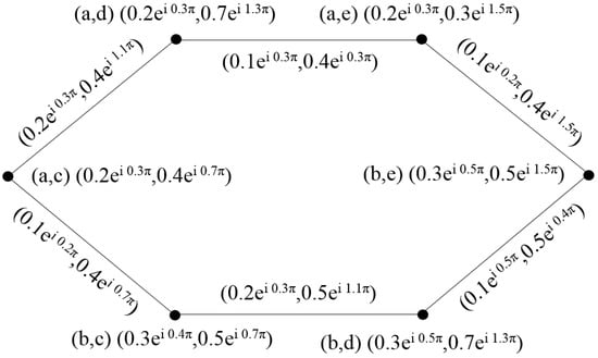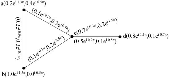 If we consider the edge . In this case, the amplitude term shows that of the experts believe that there should be a tower between these two places and of the experts believe the opposite. The phase terms show that of the experts believe that in a certain time if a tower is fixed between these two places it will produce maximum profit, while of the experts believe the opposite. Absolute values of the edges are: