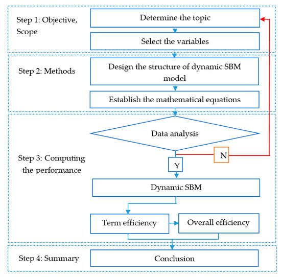 The study assesses the performance of 18 world banks during the period of 2013–2017 via a dynamic SBM model, which is presented in Figure 1 to describe a common picture of researching the process according to the following steps: