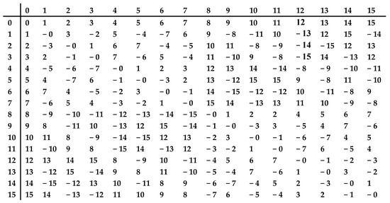 By setting where the multiplication rule of the base elements can be summarized as in the following Figure 1 (see [17,18]).
