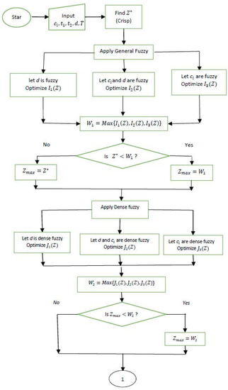 Based on proposed algorithm the flow chart has been drawn. From the input data the crisp problem has been solved first. After that, general fuzzy methodology has been employed on demand, cost parameters, and both demand and cost parameters separately; take maximum value (since it is a profit function) after optimizing them and compare this value with crisp optimum to get maximum among them. Then dense fuzzy methodology has been applied in a similar way to get optimum value among them. Thereafter dense fuzzy with single key and finally dense fuzzy with double key have been utilized to get finer optimum. After applying all fuzzy environments in the proposed model, all maximum values have been ordered to get final profit value.