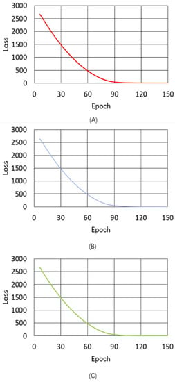 The loss of the proposed model presented in Section 4 appeared to decrease evenly when the loss of all iterations is shown because of the substantial difference in loss between the start and end of training. Figure 9 shows the loss of each iteration from Epoch 85–125 for the proposed model, which indicates an uneven decrease in the loss.