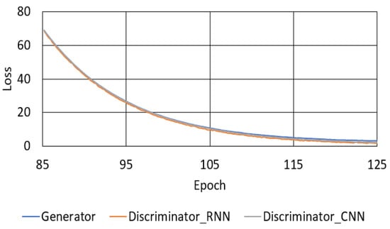 Loss variation of the proposed model for: (A) the generator-RNN; (B) the discriminator-RNN; and (C) the discriminator-CNN.