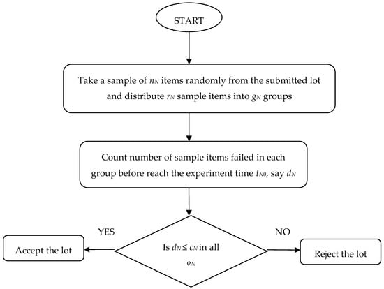 Two parameters used to characterize the proposed plan are number of groups gN and the acceptance number cN. It is to be noted that rN {rL, rU} denotes the number of items in each group and is called the group size. The operating procedure of the proposed GASP is represented by a flow chart and is shown in Figure 1.