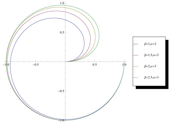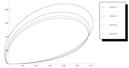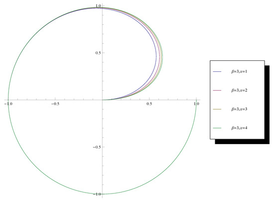 The same circular representation for the PDF of WQLD with different values of , keeping the value for the parameter at 3.0 as in Figure 2.
