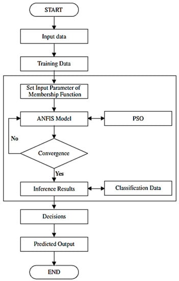 A diagram of the ANFIS-PSO approach is shown in Figure 2. A further detailed description and more information on the ANFIS-PSO is provided by Basser et al. [78]. Accordingly, a developed model for an estimation case was created based on the following three steps: