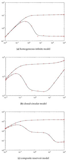 In general, more knots tends to give more approximation quality but this is unfavorable due to the increased model complexities and also for the computational burden. So we first check the effect of knots N number to approximate accurate data for three reservoir models [11]; the homogeneous-infinite model, the closed-circular model and the composite reservoir model. Their dimensionless well bore pressures in the Laplace space are respectively