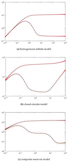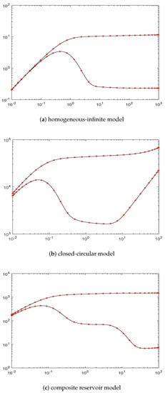 - Composite reservoir model:withandwhere is the dimensionless radius inner zone, is the Flow ratio and is the storage capacity ratio.