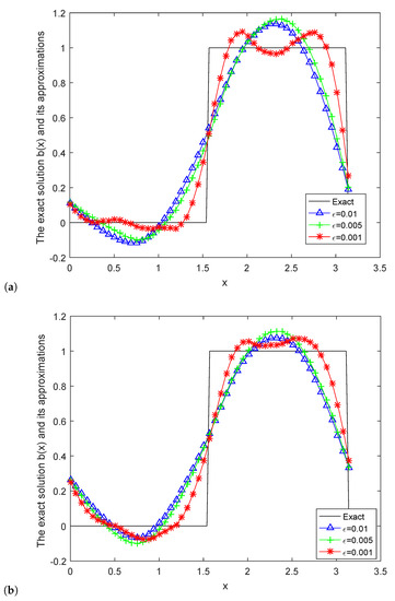 Consulting [26,27,28], regular solutions of BP1 and BP2 are given by the truncated regularization method. Based on the singular systems of linear compact operators and :