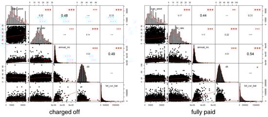 Figure 1 shows some of the correlation plots for the loan status of the samples after normalizing the raw data. As can be seen in the figure, the “charged off” and the “fully paid” have very similar plot correlations. These loan status classes can be easily confused with each other. It is difficult to extract discriminative features for the loan status.