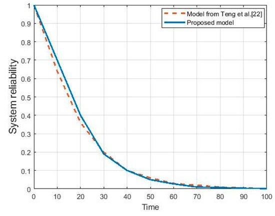 System reliability prediction by the proposed model and model developed in Teng et al. [22].