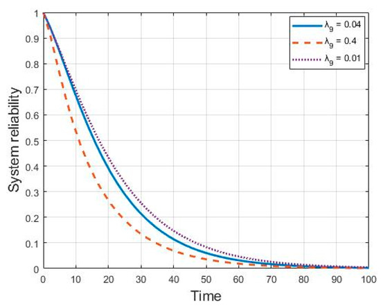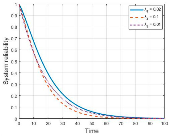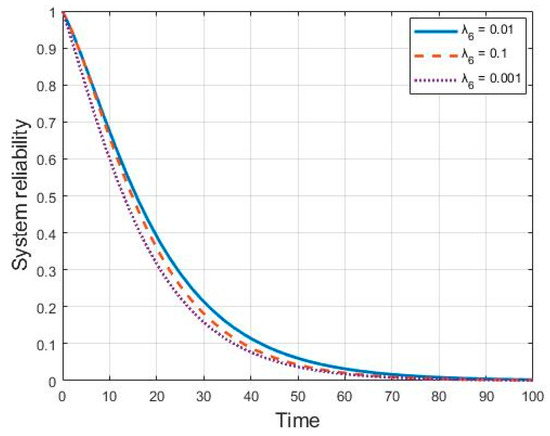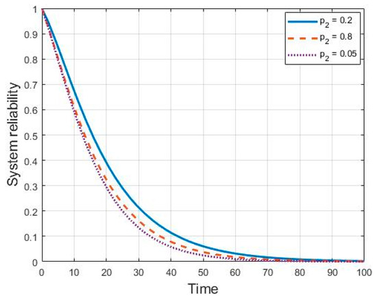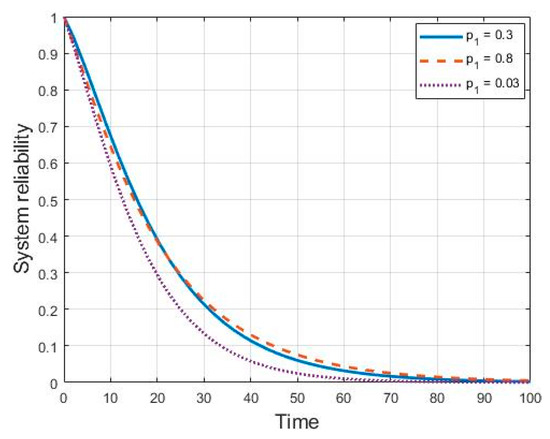 System reliability comparison with the changes of probability () of fixing partial failures through software.