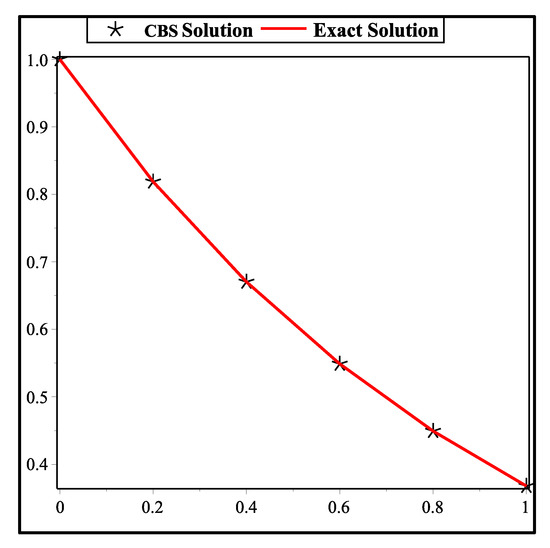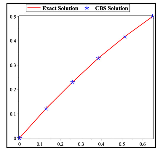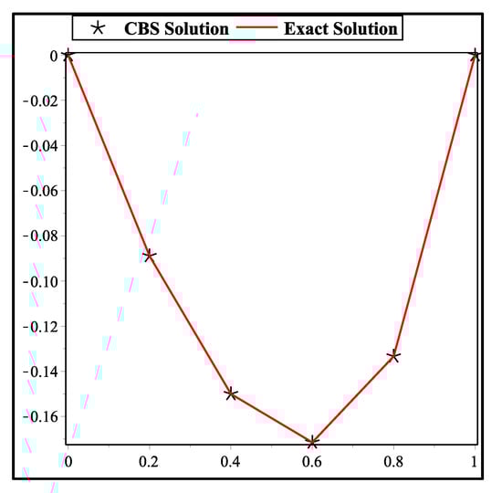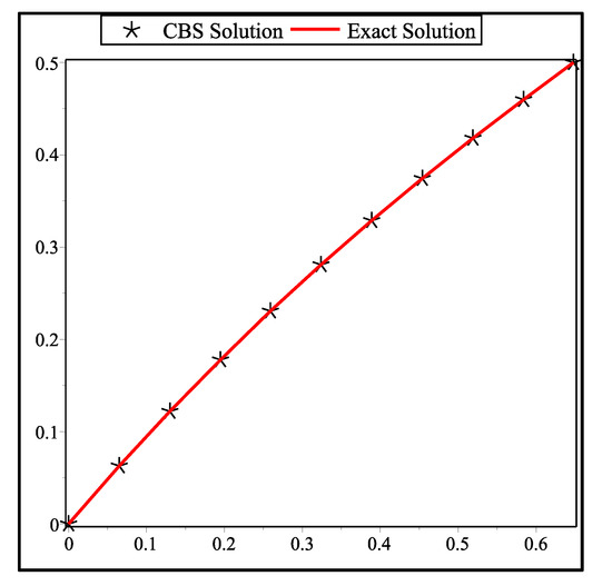 Analyzing the exact solution and CBS solution of problem 2 at .