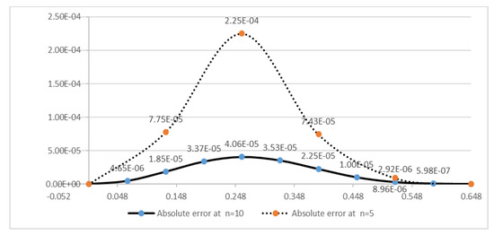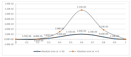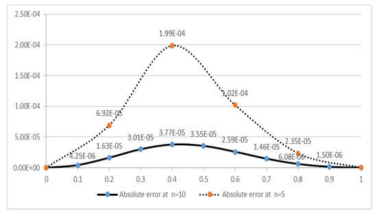 the exact solution of given equation is . The values of fifteen unknowns from the Equations (18)–(20) are
