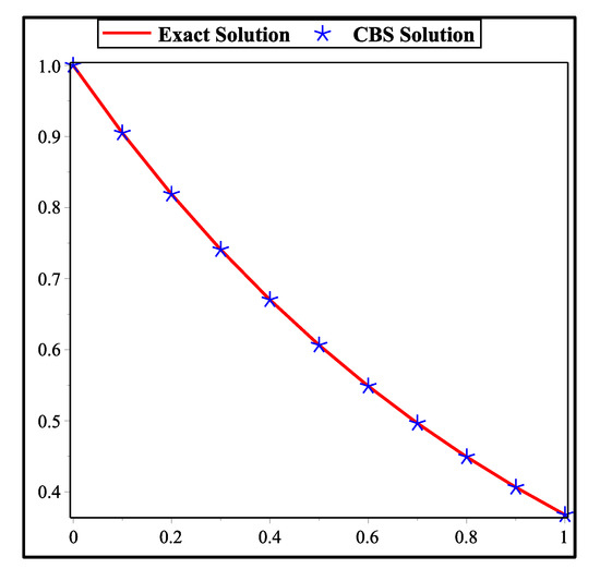 Analyzing exact solution and CBS solution of problem 1 at .