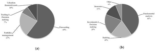 Finally, focusing on the analyses of banks, the existing literature shows that the introduction of AI techniques represents a breakthrough in the analysis of several areas, such as risk management. Using big data to increase banks’ knowledge of their customers, to provide loans according to certain credit scores, to measure their efficiency, to use advanced computational systems to balance their ALCO portfolios and to optimize the capital structure and liquidity and funding needs, banks have come to rely heavily on these advanced methodologies [77,78,79,80,81,82]. The growing importance of fuzzy logic in this type of analysis is demonstrated by the finding that approximately 20% of the portfolios focused on corporate finance are concerned with bank analysis.