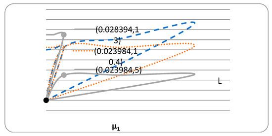 Next, we use graphics to explain the whole holding decision-making process. First, we fix factors other than as above, when . Here, we only discuss the case where transaction costs are taken into account.In order to illustrate the problem more clearly, we expand and by 10 times at the same time, which obviously does not affect their size relationship.