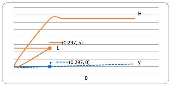 Now, for case , let us discuss the impact of on the optimal cash holdings. Here, we keep the same factors as above except for . To simplify the problem, we can let . Then, the problem becomes that if , the best cash holding levelis H and if , the best cash holdings is L. The values of the parameters are the same as the previous assumptions. Thus, we have