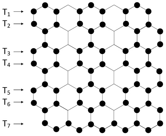 By , we denote the subset of the double-totally dominating set on the zigzag line of . Let us define: