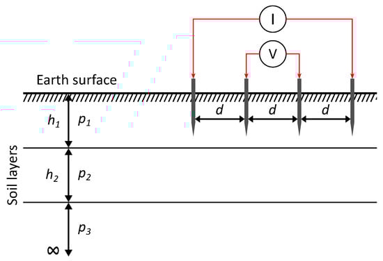 - Yang, H.; Yuan, J.; Zong, W. Determination of three-layer earth model from Wenner four-probe test data. IEEE Trans. Magn. 2001, 37, 3684–3687. [Google Scholar] [CrossRef]