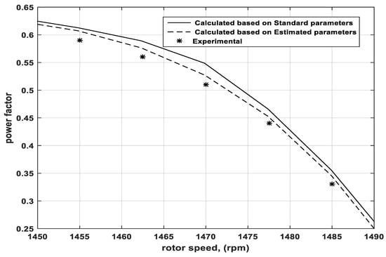Figure 9, Figure 10, Figure 11 and Figure 12 show the results obtained from the parameters and data specifications of the manufacturer, PSO algorithm and experimental measurements of the induction motor. Figure 9 and Figure 10 show standard, estimated and experimental value of stator current and input power factor. These figures indicate that the estimated values are well matched and agree with their measured ones. On the other hand, the large deviation between the standard values of stator current and input power factor and their experimental ones is owed to the consideration that the parameters of the machine are assumed to be constant at all operating conditions.