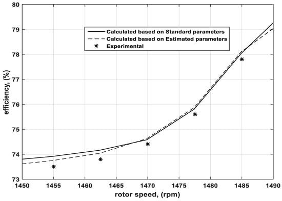 Figure 11 shows standard estimated and experimental values of the motor efficiency versus motor speed. From this figure, the estimated values of motor efficiency and the measured values have insignificant deviation and the discrepancy between estimated and experimental efficiency values especially at high values of motor speed is attributed to the mechanical loss, which has been disregarded from the equivalent circuit.