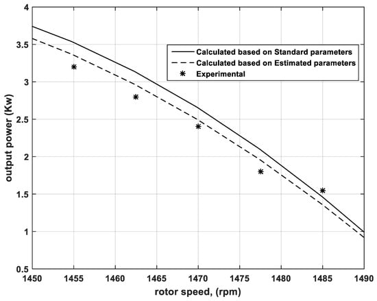 Figure 12 shows the standard, estimated and experimental values of the motor input and output power versus motor speed, respectively. From this figure, it is clear that the estimated values of both motor input and output power and measured values have small deviation. The discrepancy between estimated and experimental values, especially at high values of motor speed, is attributed to the mechanical loss and magnetization saturation, which is disregarded from the equivalent circuit.