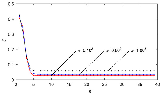 - The parameter estimation errors are generally becoming smaller with iteration s increasing and with the noise variance decreasing. The estimated parameters are very close to the real values.