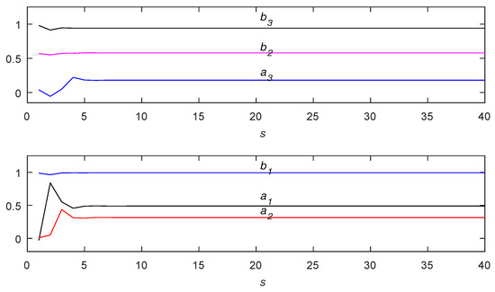 - The estimated noise variances in Table 2 show that variance estimates are relatively large in the previous period because of the inaccurate parameters and states, but with the increasing of the iteration s, the noise variance estimates can converge to their true value.
