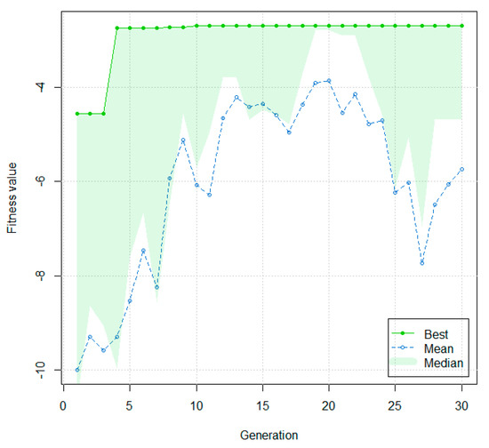 The GA was introduced by Holland [25] to mimic the natural evolution of a population by allowing solutions to reproduce chromosomes, create new offspring, and compete for survival in the next generation. In each generation, t, the fittest elements were selected to the mating pool, which was processed by three basic genetic operators for generating new offspring: Reproduction, crossover, and mutation. Based on the principle of the survival of the fittest, we observed that the best chromosome of a sample solution could be obtained. The power of the GA depended on its ability to search for multiple points in a parallel manner instead of a single point. Therefore, the GA could quickly find the appropriate global optimum and avoid reaching a local optimum. The purpose of using the GA in this paper was to determine the input variables required to key into a sub-Choquet integral.