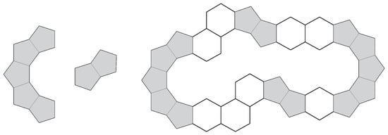 - Rosenfeld, V.R.; Dobrynin, A.A.; Oliva, J.M.; Rue, J. Pentagonal chains and annuli as models for designing nanostructures from cages. J. Math. Chem. 2016, 54, 765–776. [Google Scholar] [CrossRef]