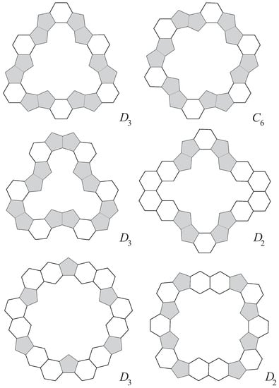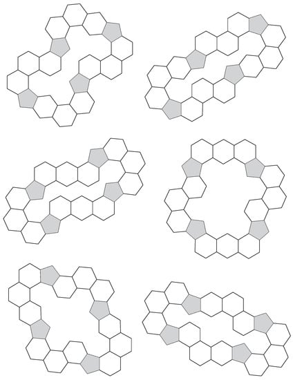 - Fowler, P.W.; Manolopoulos, D.E. An Atlas of Fullerenes; Dover Publications Inc.: New York, NY, USA, 2006. [Google Scholar]