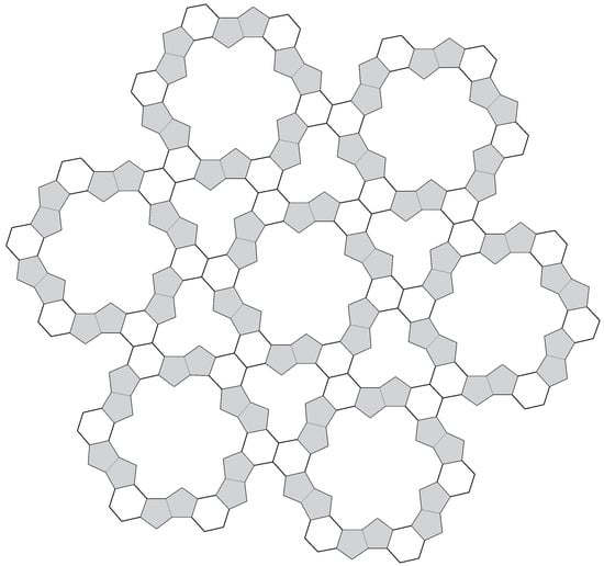- Grünbaum, B.; Shephard, G.C. Tilings by regular polygons. Patterns in the plane from Kepler to the present, including recent results and unsolved problems. Math. Mag. 1977, 50, 227–247. [Google Scholar] [CrossRef]