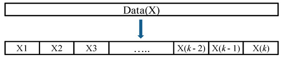 In the pipelined broadcast algorithm, data to be broadcast are partitioned into k packets as shown in Figure 4, and the packets are transmitted through a k-step pipeline as in Figure 2, Figure 3, Figure 4 and Figure 5; this means the communication channels can be heavily used during the period from step 3 to throughout step k with iterative synchronization processes, which is unavoidable on the mesh network level to verify the next destination. Consequently, the algorithm shows better performance as the data size increases. Thus, the value of k is very important in balancing the trade-offs between the number of synchronization processes and the utilization of the communication channels. The value of k is known to be optimal if it is chosen according to Equation (1) [16].
