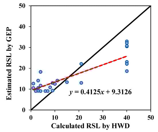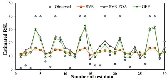 In light of the above, the current method of determining RSL is not only costly but also compromises the safety of users due to traffic interference during testing. Given the limited budget resources of transportation agencies, determining the RSL of pavement to manage a pavement network represents one of the ongoing concerns of such agencies []. Considering the necessity of RSL determination for PMSs as well as the problems mentioned in the current procedure of RSL determination, a new pavement performance model is proposed in this paper. In this study, three methods of SVR, SVR-FOA (support vector regression optimized by the fruit fly optimization algorithm), and GEP have been applied to predict the RSL of road pavements. Given the importance and widespread use of PCI in PMSs, RSL modeling was based on PCI.