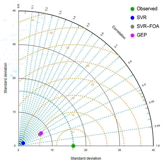 In this paper, this optimization algorithm has been selected to find the optimal values of SVR parameters, which is known as SVR-FOA. The general steps of SVR-FOA can be summarized as follows [,]. The flowchart of the SVR-FOA method is illustrated in Figure 6.