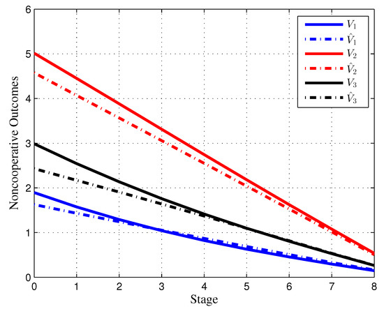 2.2. Noncooperative Outcomes in the Game Model with a Moving Information Horizon