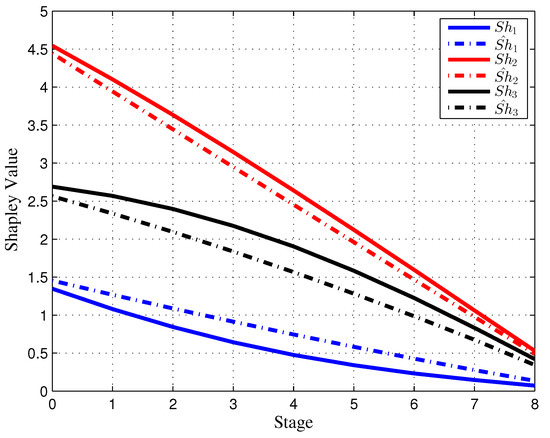 If there exists one set of imputations , , in (A11) for which the inequalities (A9) are not satisfied, this unsatisfied inequalities will lead to the following condition for being satisfied: