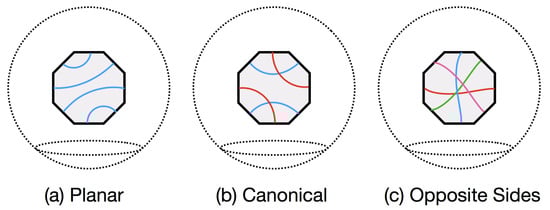 If the chords in the schema can be drawn without crossings (Figure 10a), the polygonal opening closes up to a cut graph which is a tree, which shows that the surface is a topological sphere and can be coded in .