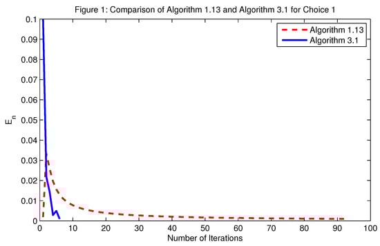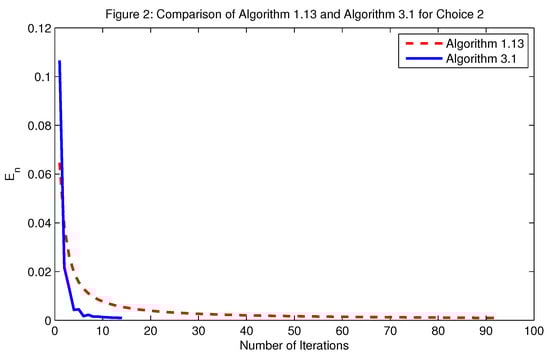 For each , we set and . Put and in Theorem 2. We can check that F is convex and differentiable on with 2-Lipschitz continuous gradient. Moreover, G is convex and lower semi-continuous but not differentiable on . We know that for