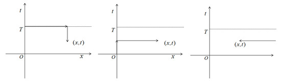 The integral curve is from to , where and . Furthermore, the point is an arbitrary point in the domain D. We know that the integral of (36) is independent of the path of integration. Without loss of generality, we will consider the particular integral paths as follows, see Figure 1.