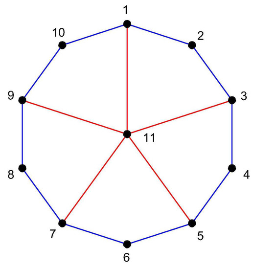 Anti-web gear graph: The anti-web gear graph denoted by , where consists of cycle of vertices and also the edges joining vertices having distance two between them on this cycle. And the vertex n joins with vertices . The order of this graph is n.