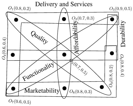 Here, = indicates that the products proposed by organization satisfy the customer’s requirement by , which is affordability and so on. For = and = , we have: